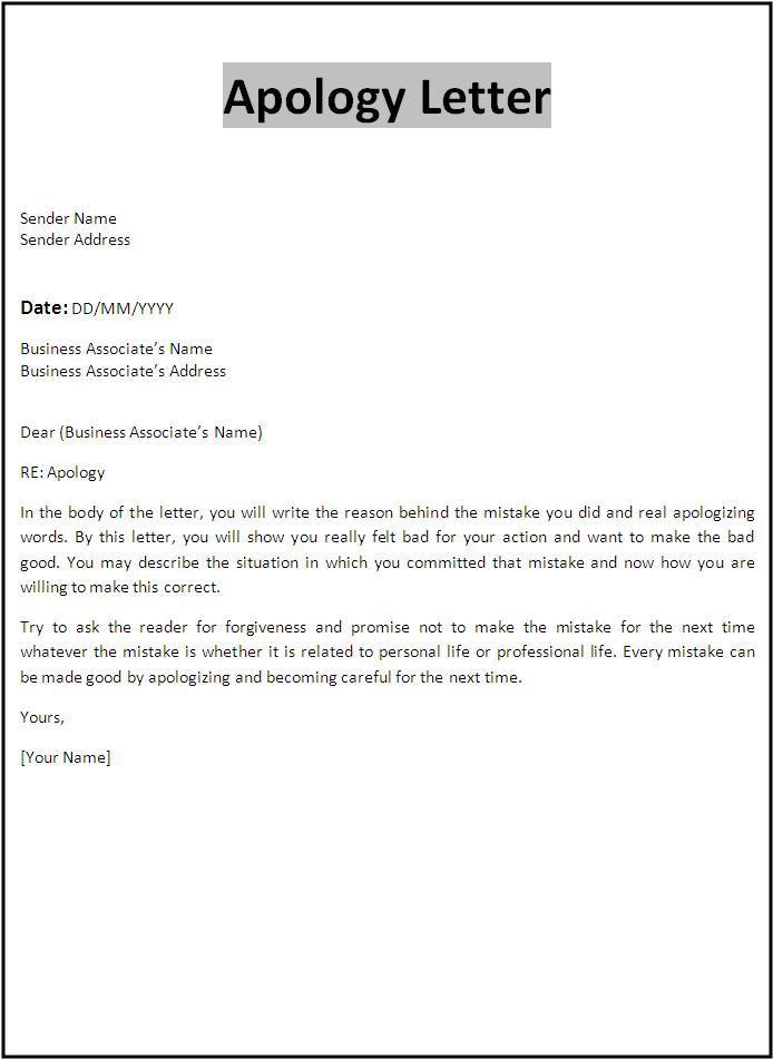Apology Letter Template