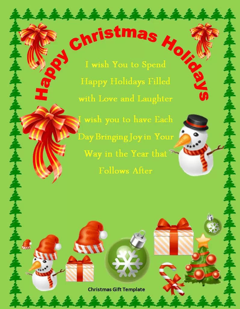 2- This Christmas gift template is provided in MS Word software, which is very easy to use. Thus it provides more and more options to re-design it and can add more information. This can increase the value of work and enables the reader to understand the message completely.