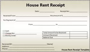 A house rent receipt format is a slip which functions as invoice issued by the landlord to the tenant when rent is paid. This slip contains information about the landlord and the tenant, rented property, amount of rent, date and mode of payment of rent and signature of the tenant and landlord. This slip serves as evidence but there are no hard and fast rules to follow for drafting a rent receipt. The only thing we have to follow is to provide accurate information in the receipt.A part from this, we are also providing our services of developing new templates on order. In this section, you will send us your requirements and title to our technical staff. After setting down all matters, they will deliver you the order word template on very economical rate. For more information and help, you can visit our Help Page.