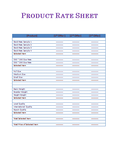 1- This Rate Sheet Template is prepared with all possible contents and drafts. It can help viewer or user to insert relevant data in it without much hazels. All he/she needs is to download this template.